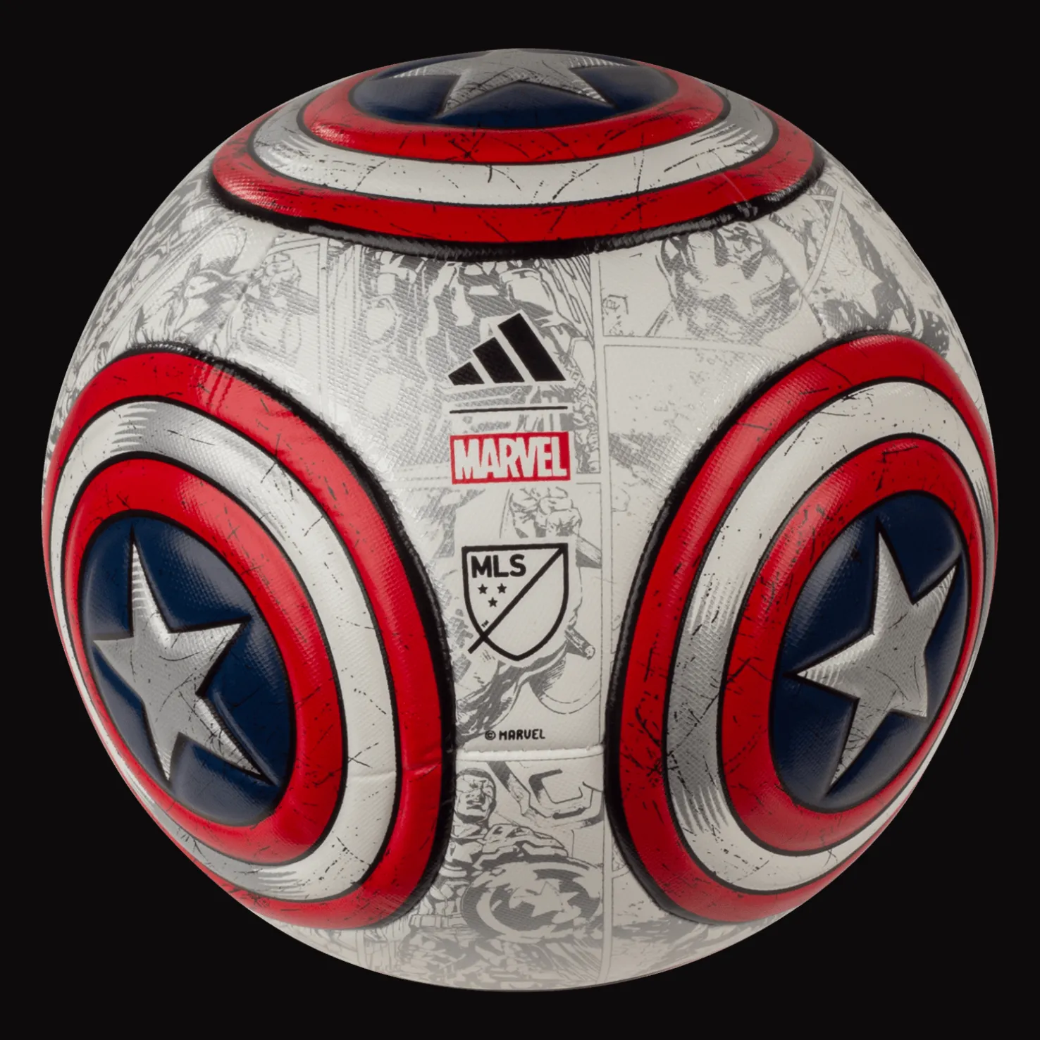 Adidaksen MLS Training Captain America -jalkapallo on valmistettu kestävästä koneellisesti valmistetusta TPU:sta, jossa on nailonia pehmeän pallotuntuman ja paremman kestävyyden takaamiseksi. Pallo on ommeltu koneellisesti ja suunniteltu kestämään kovaa käyttöä.