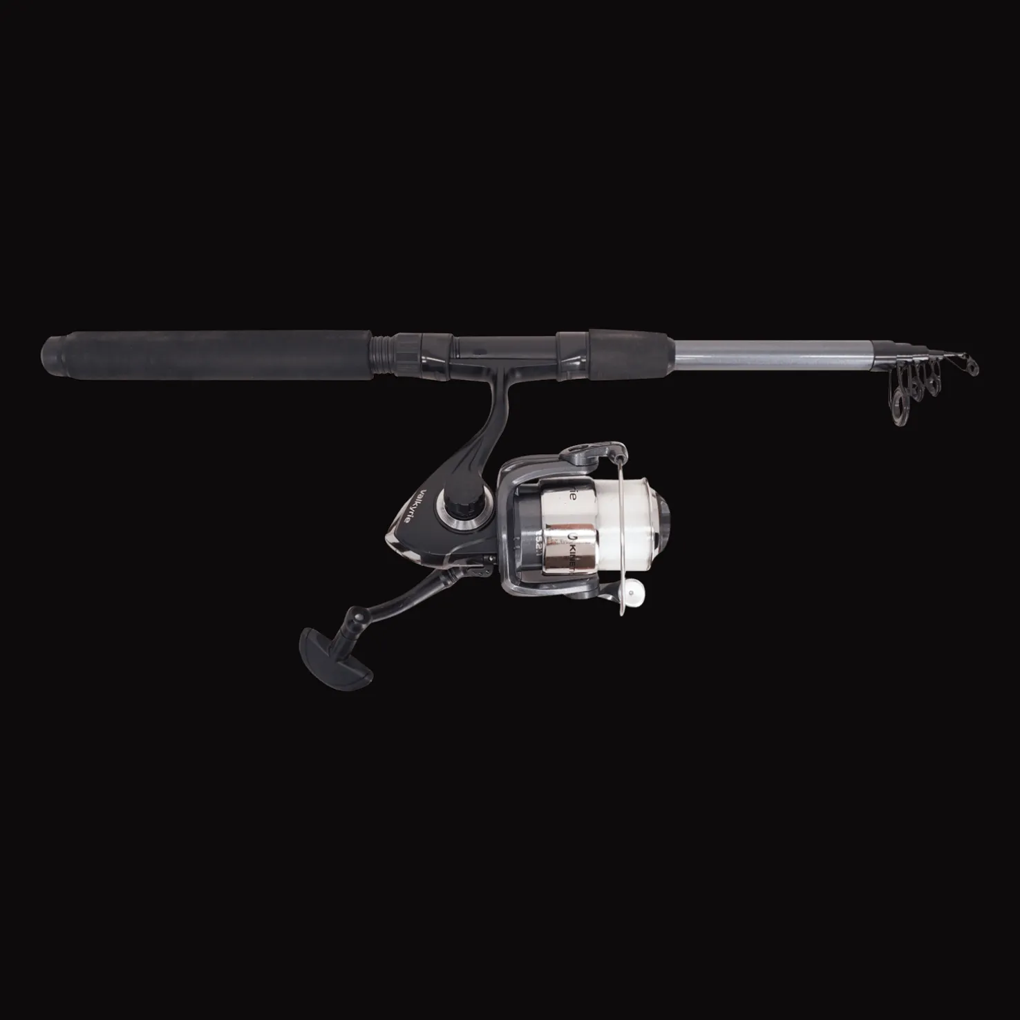 Avokelasetti, jossa teleskooppivapa, kela ja nailonsiima. Tukevarunkoinen kela ja puola, tarkka jarrujärjestelmä. Vahva aihio, herkkä kärki ja miellyttävä Eva-kahva.