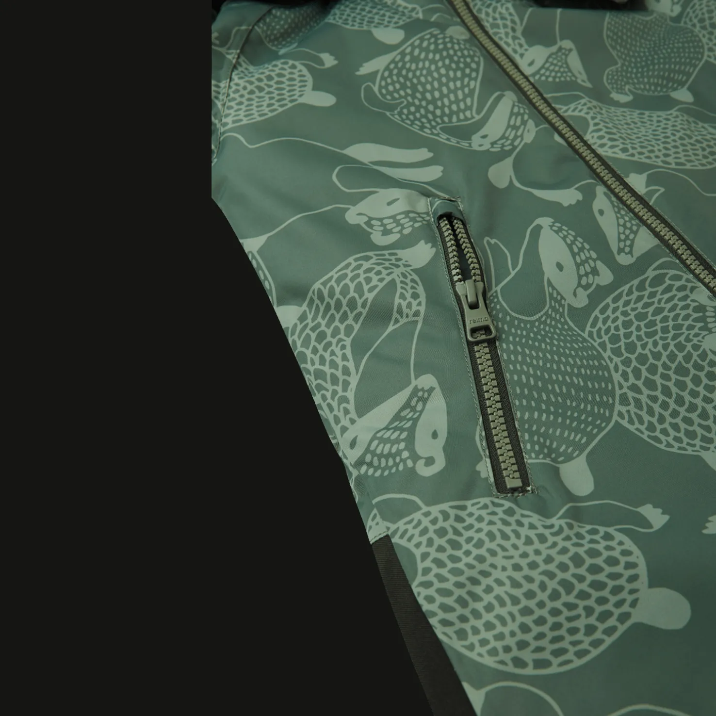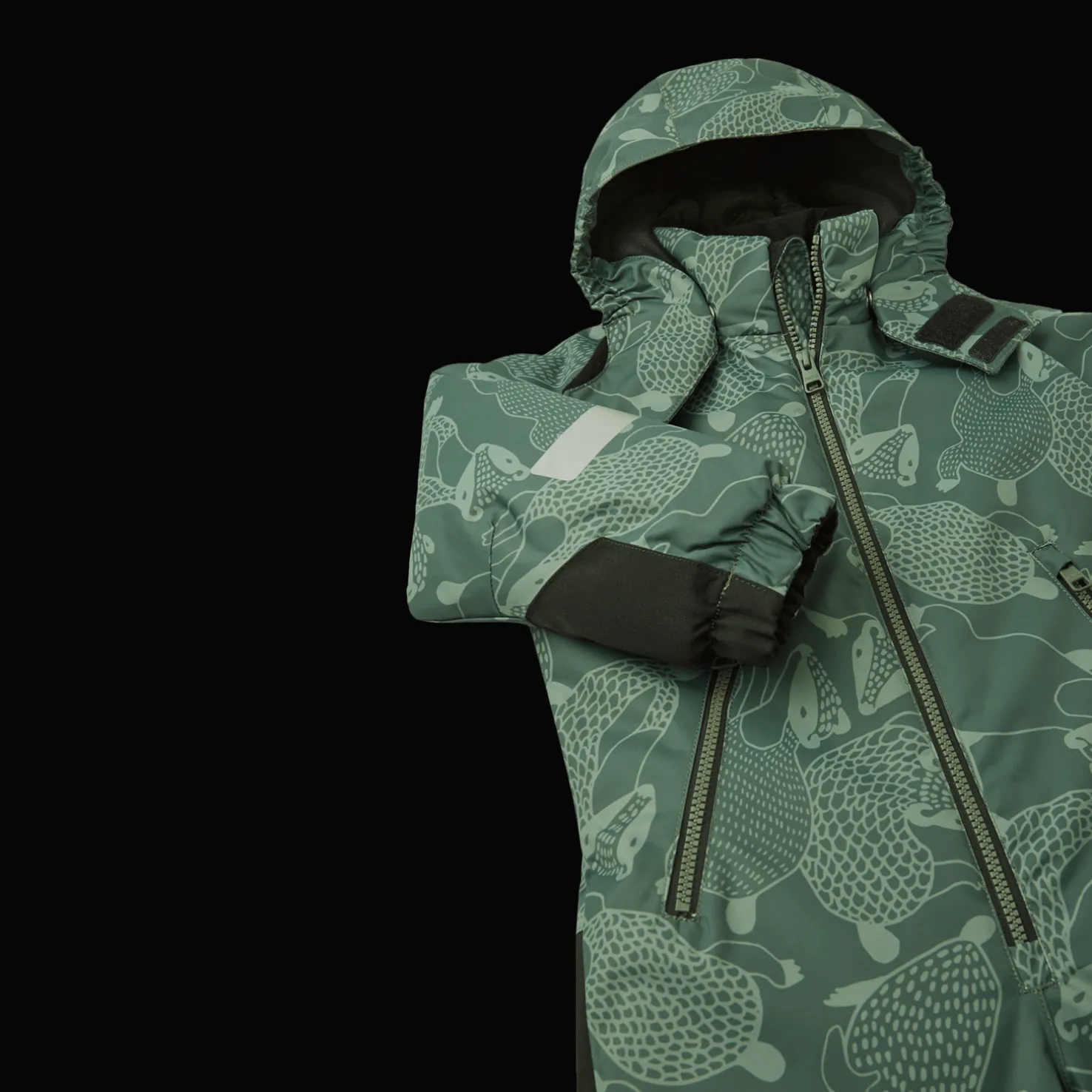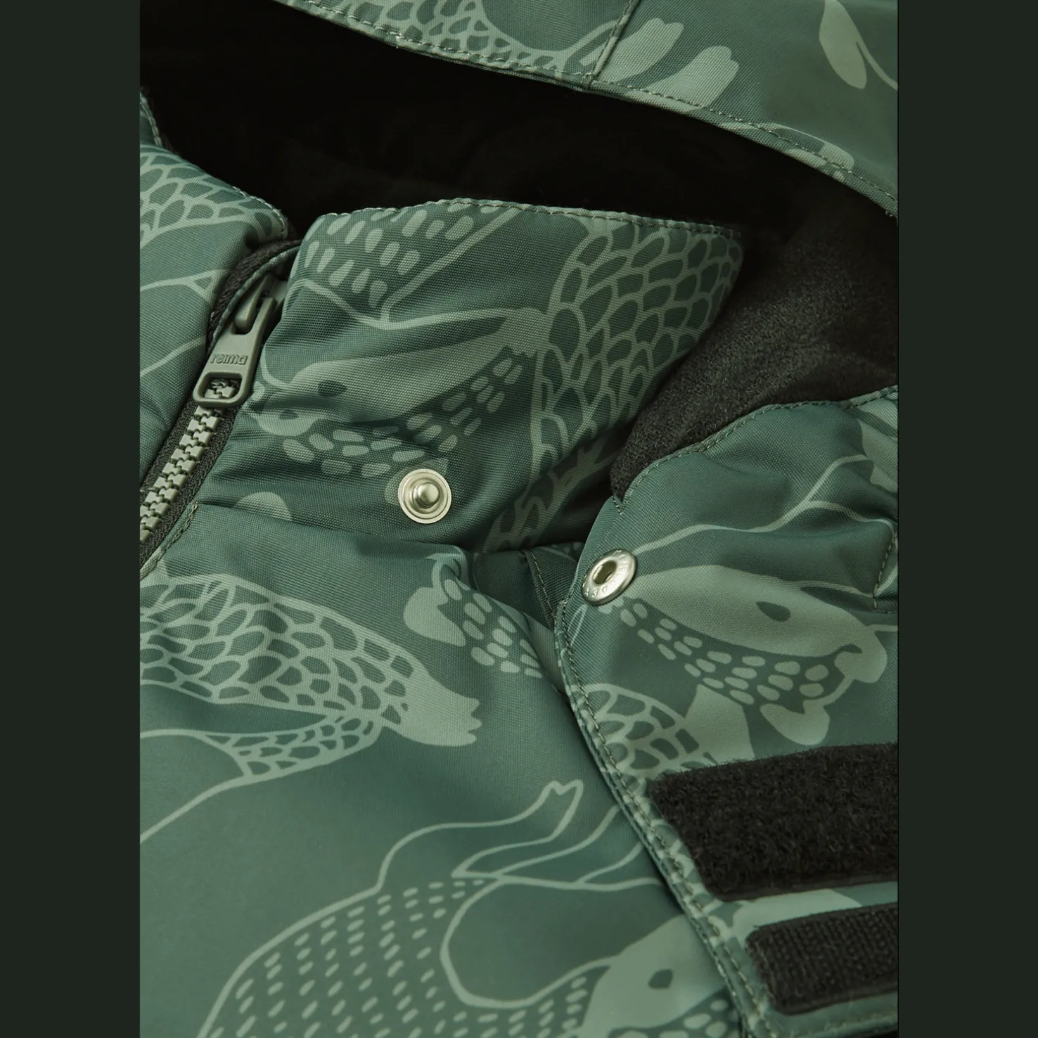 Talvihaalari on valmistettu veden- ja tuulenpitävästä ja hengittävästä materiaalista, jossa on likaa hylkivä pinta, joka varmistaa veden- ja tuulenpitävyyden. Kokonaan tiivistetyt saumat estävät veden tunkeutumisen sisään.
